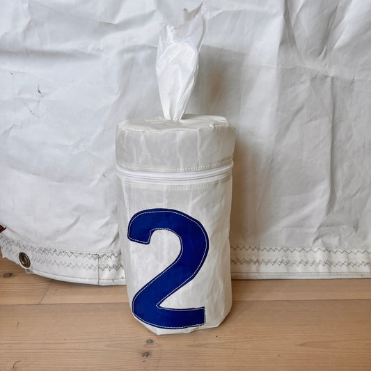 Stor bag med blå tall fra seil, innerlomme med glidelås