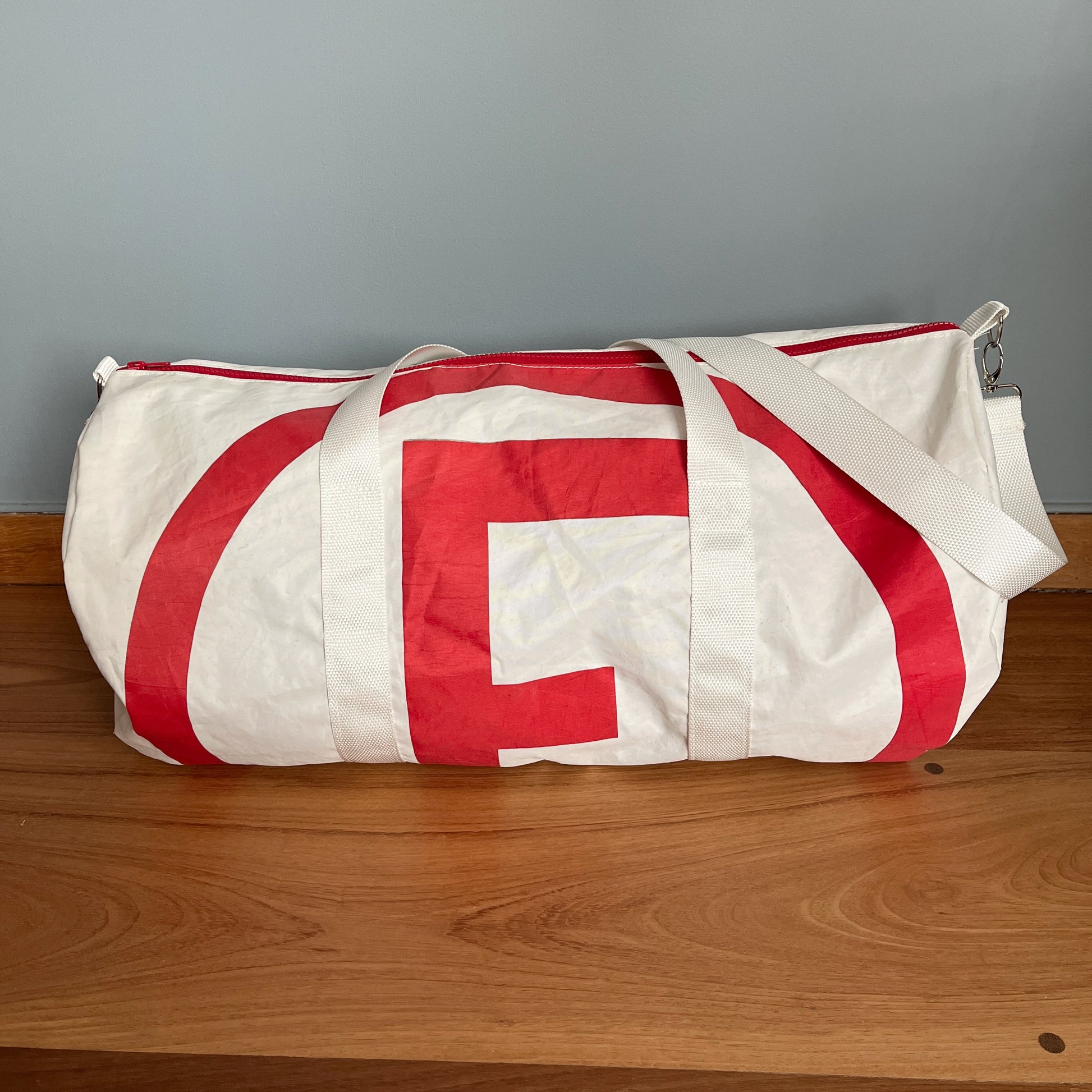 Dette er en unik bag med logo fra seilet til en IF-båt. Fin og veldig lett reisebag. Seil er et sterkt materiale, og veier lite.