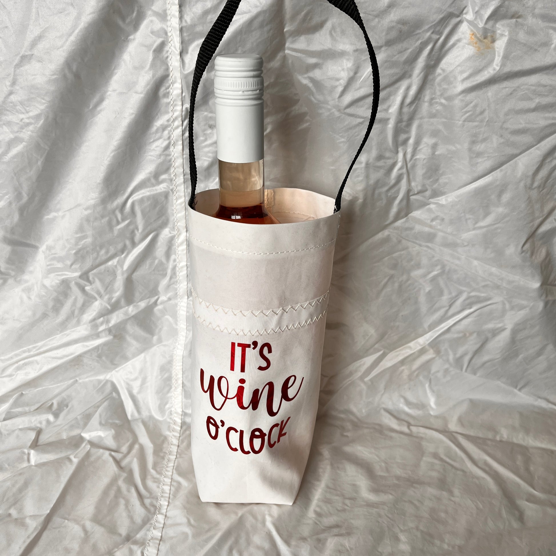 Om seil som materiale. Seil er et sterkt materiale, og de fleste seilene er også veldig lette. Dette gjør produktene lette, men også sterke. Alle seilene er brukt, derfor har de også merker og noen steder kan der være noe misfarging, f.eks. der seilet har "gnagd" mot et stag eller salingshorn. Fargen og strukturen på seilet varierer også, fra kritt hvitt, til mer grålig, eller gullig farge. Jeg tilpasser seilene til typen produkter, så der det trengs myke seil bruker jeg det, og på f. eks. ølbøtte er det fint med tykkere, stivere seil