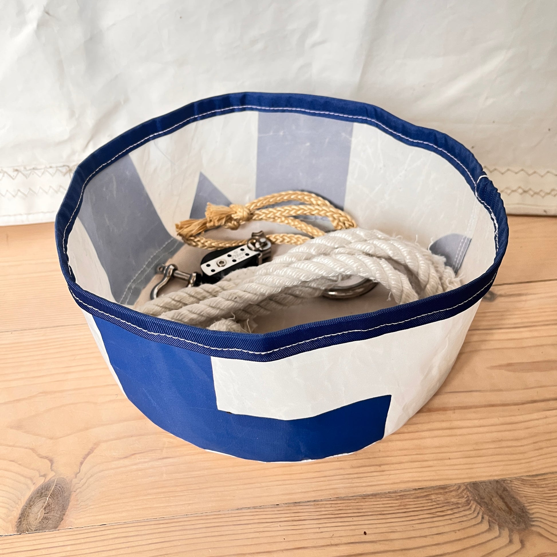 Rund kurv til brød, rundstykker eller til oppbevaring i båten. Myk og føyelig.