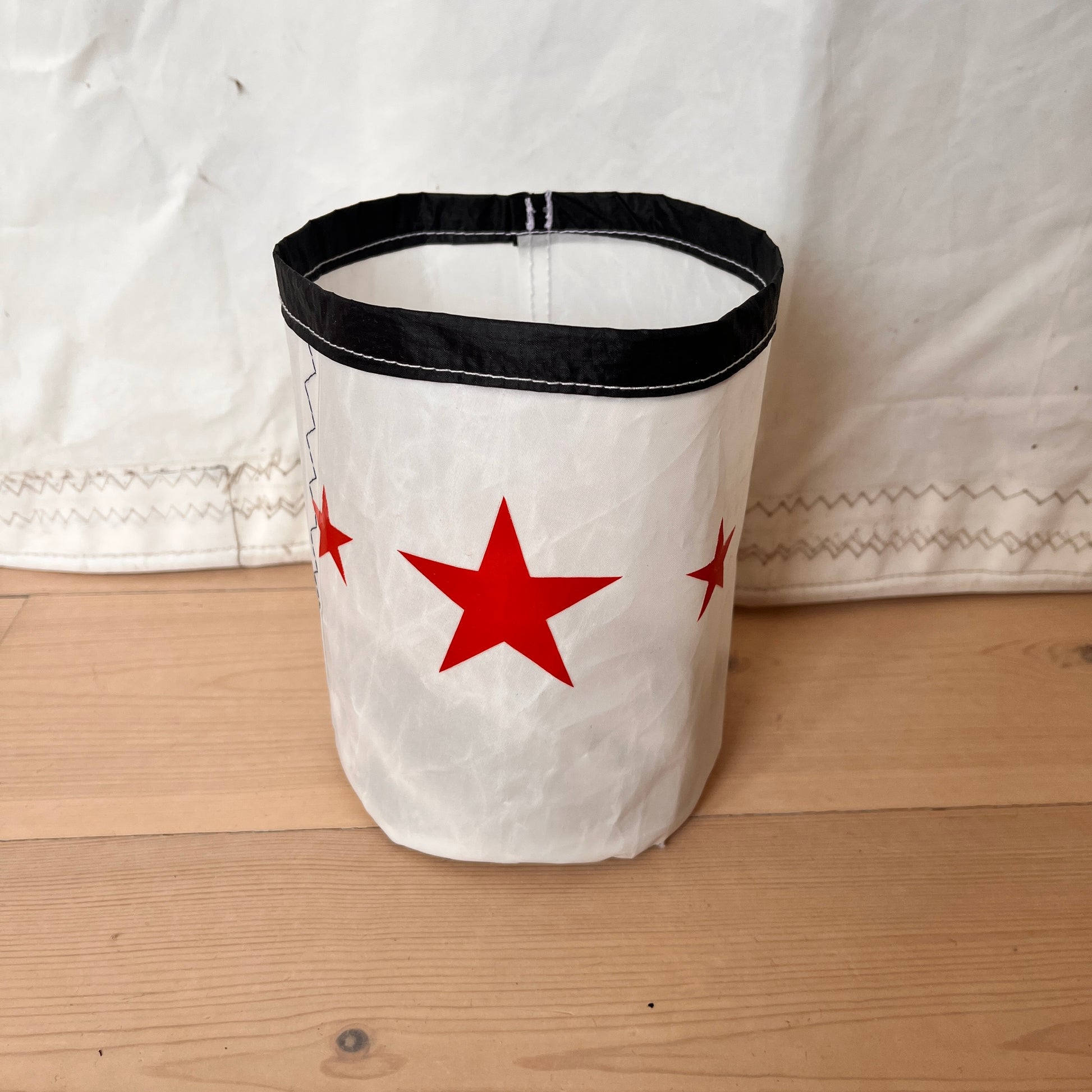 Om seil som materiale. Seil er et sterkt materiale, og de fleste seilene er også veldig lette. Dette gjør produktene lette, men også sterke. Alle seilene er brukt, derfor har de også merker og noen steder kan der være noe misfarging, f.eks. der seilet har "gnagd" mot et stag eller salingshorn. Fargen og strukturen på seilet varierer også, fra kritt hvitt, til mer grålig, eller gullig farge. Jeg tilpasser seilene til typen produkter, så der det trengs myke seil bruker jeg det, og på f. eks. ølbøtte er det fint med tykkere, stivere seil