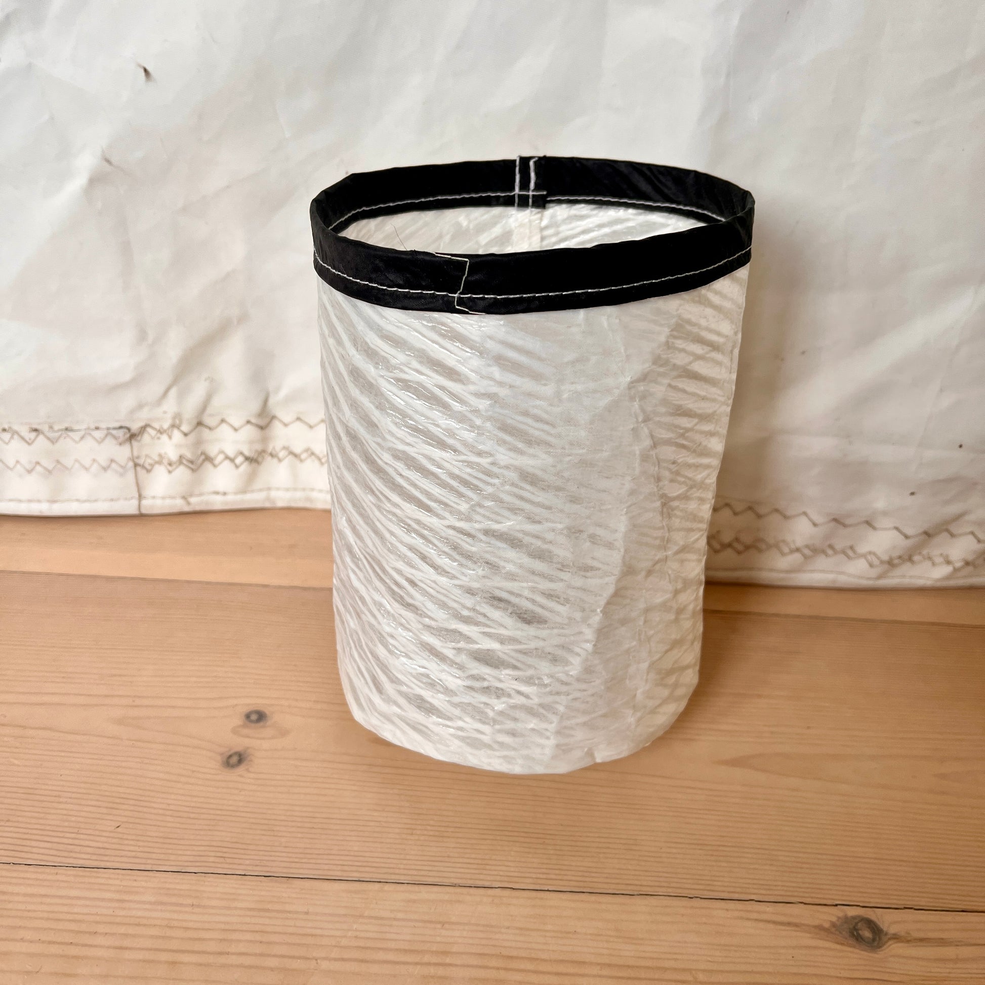 Om seil som materiale. Seil er et sterkt materiale, og de fleste seilene er også veldig lette. Dette gjør produktene lette, men også sterke. Alle seilene er brukt, derfor har de også merker og noen steder kan der være noe misfarging, f.eks. der seilet har "gnagd" mot et stag eller salingshorn. Fargen og strukturen på seilet varierer også, fra kritt hvitt, til mer grålig, eller gullig farge. Jeg tilpasser seilene til typen produkter, så der det trengs myke seil bruker jeg det, og på f. eks. ølbøtte er det fint med tykkere, stivere seil