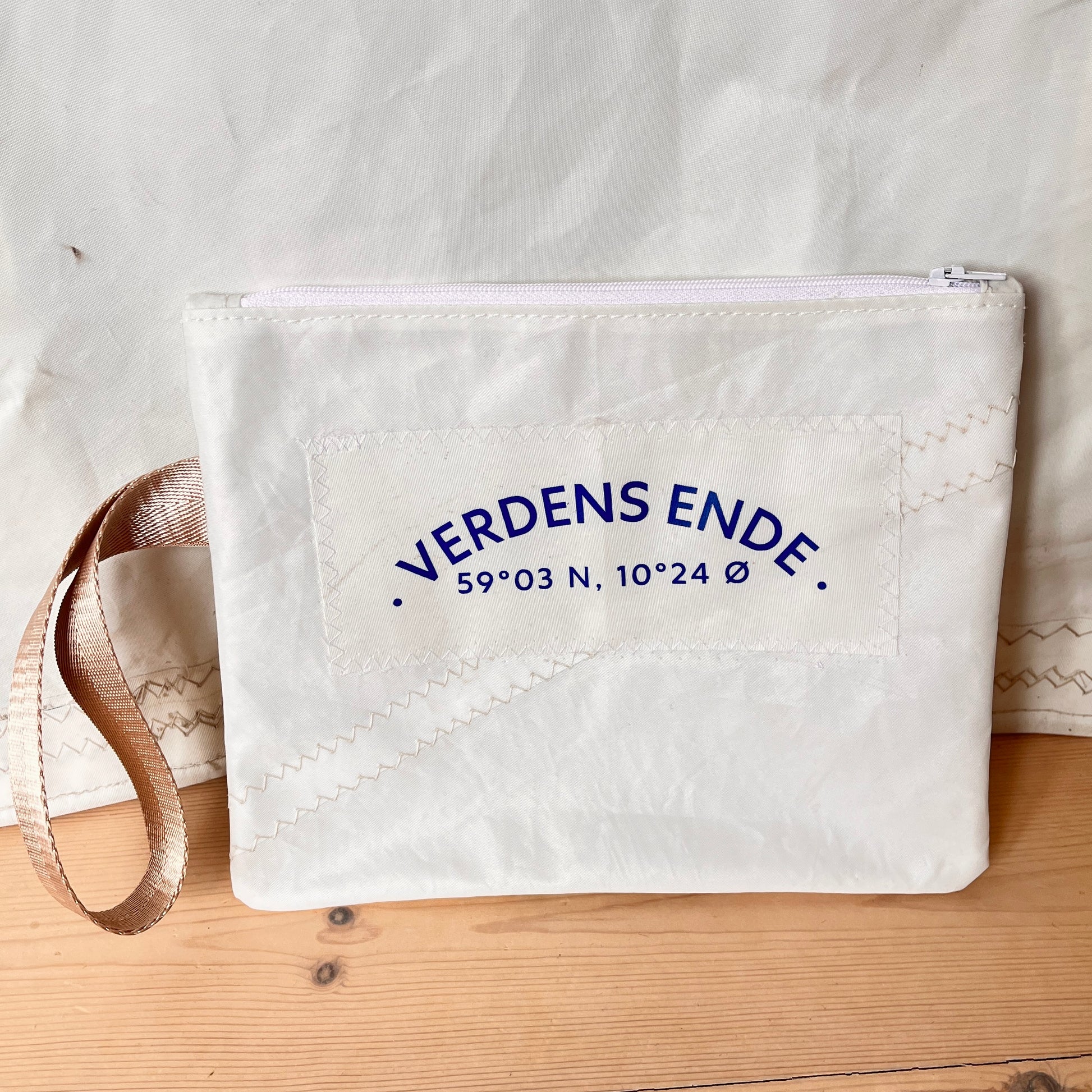 Har du vært på "Verdens ende"? Handy små vesker til mobilen, nøklene og solkremen! Her er det plass til det som forsvinner i bagen. Fin som toalettmappe. Lett å få tak i med smart håndtak.