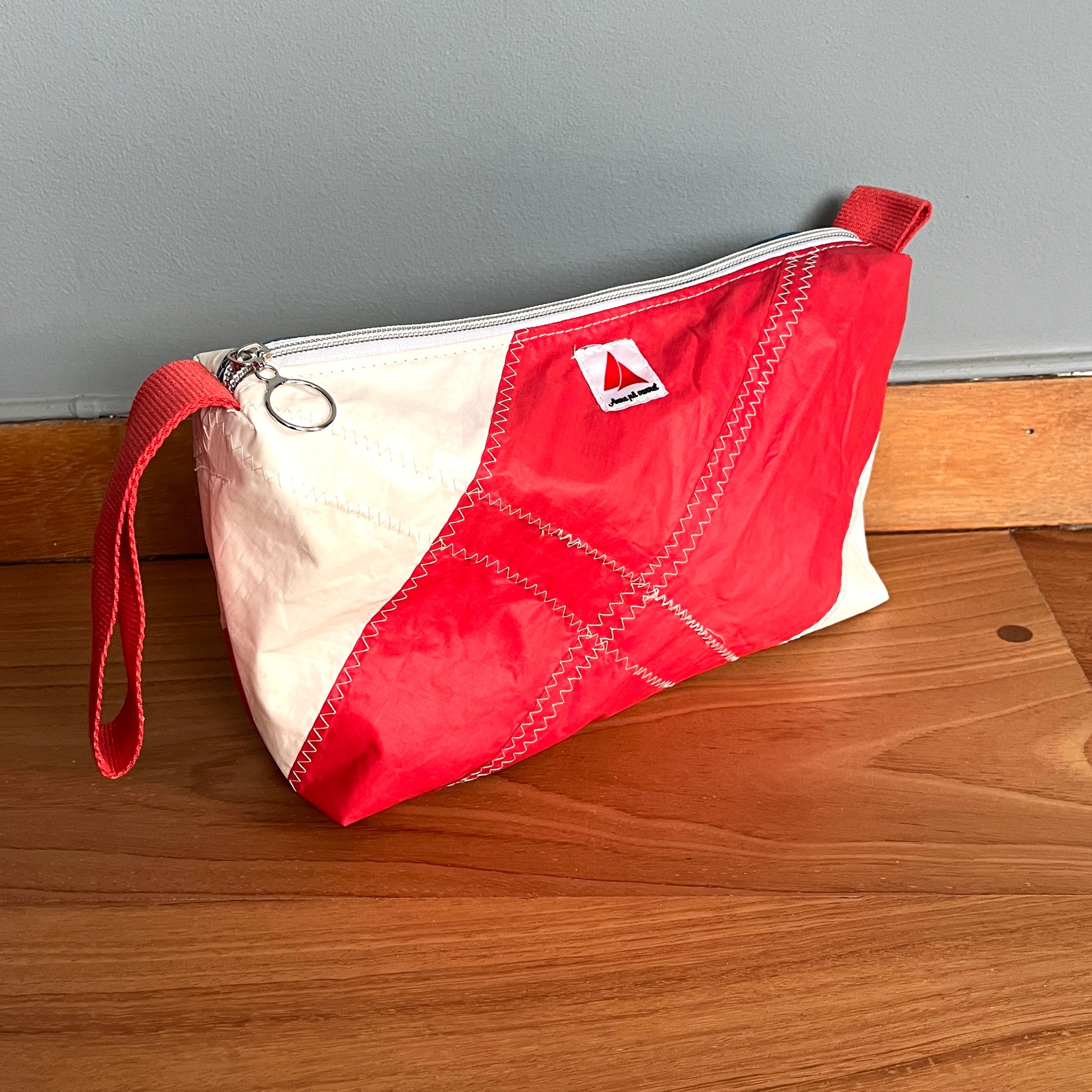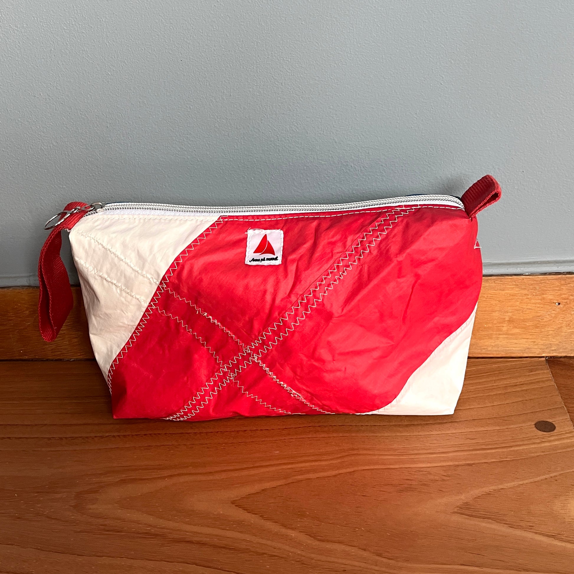Fin størrelse på toalettmappe, ca 26 cm x 15 cm høy x 7cm bred i bunnen.