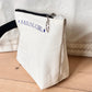 En liten toalettmappe, ca 22 x 15cm, og bredde nederst på ca 7cm. Plass til litt av hvert, men kanskje ikke hele badet om du er dame, eller veldig forfengelig mann :-)