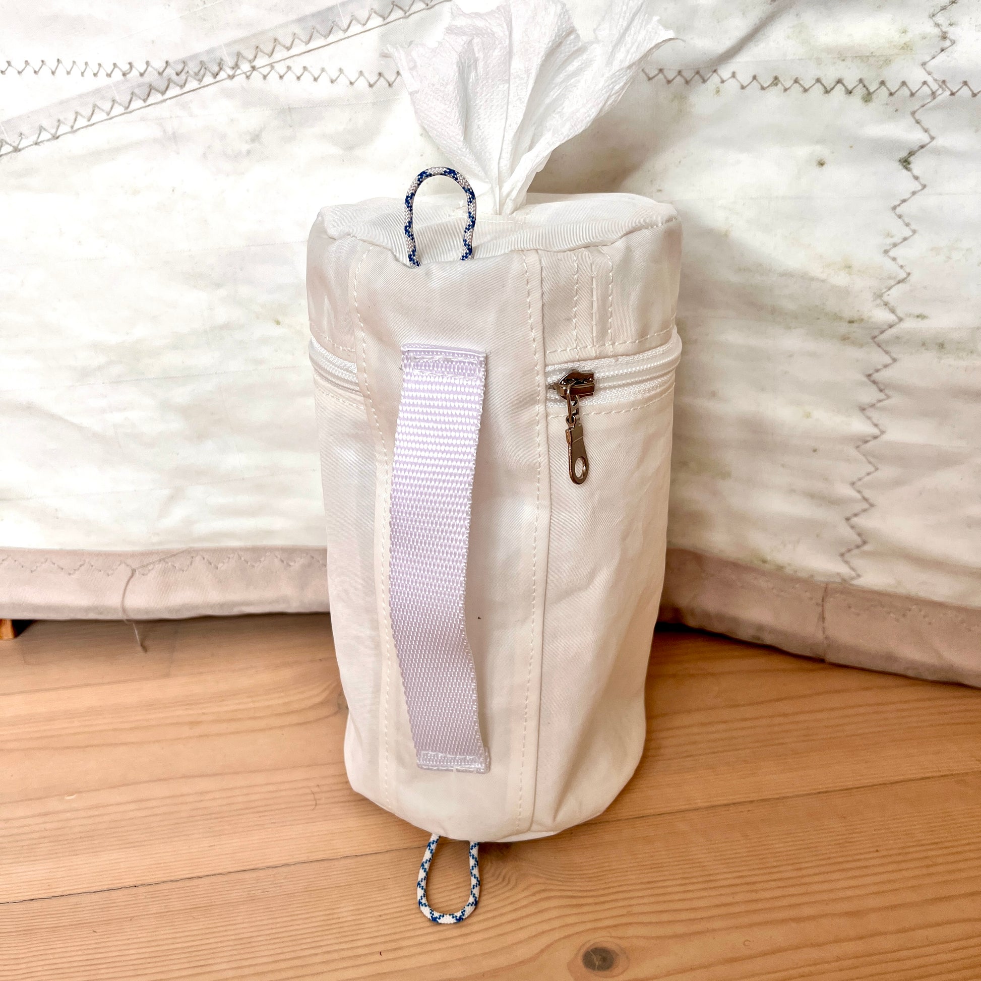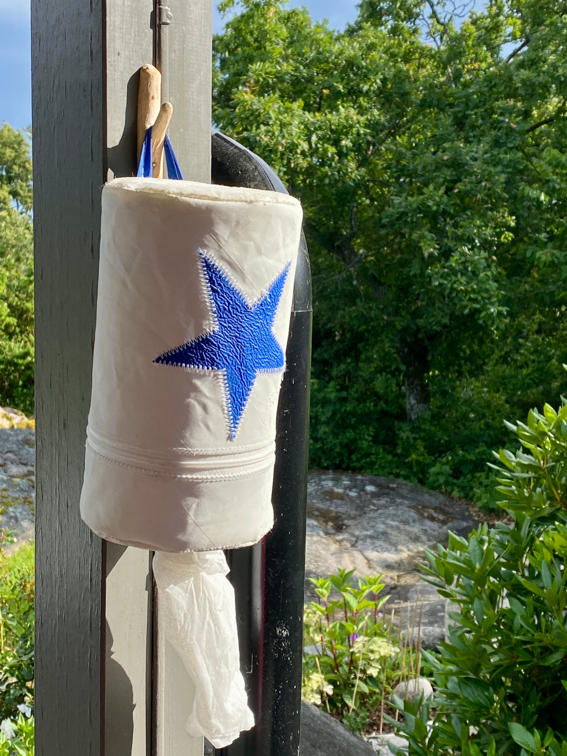 Putt inn din Torky-rull og la den stå fremme, eller heng den i båten på en knagg, så er det bare å rive av og tørke i vei. Stilig er det også. Kan henges opp eller oppned. Torkybeholderen er laget i redesignet gammelt seil, designet, sydd av Anne :-).
